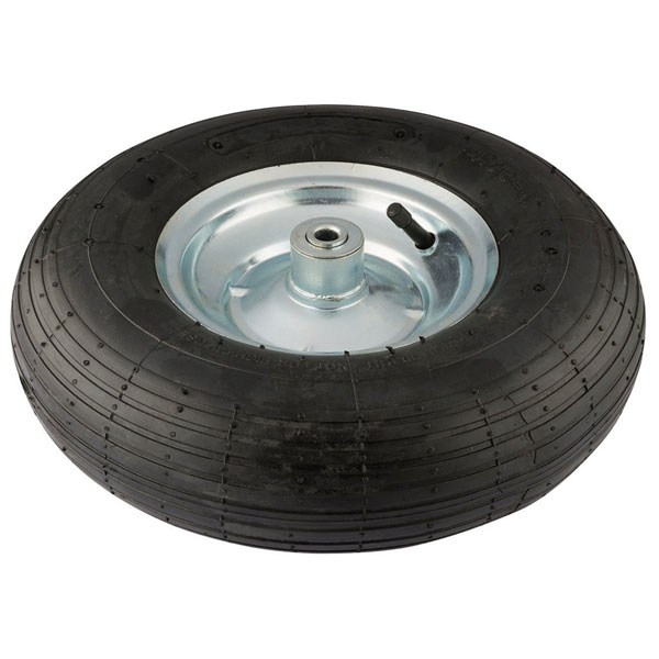 Pneumatic rubber wheel with steel hub.