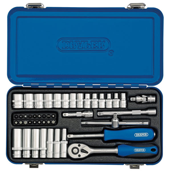 Six point sockets made from chrome vanadium steel that's hardened and tempered with a satin finish. Supplied with a 72 tooth reversible soft grip ratchet and accessories. Packed in a steel carrying case.