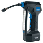 12V cordless air compressor Supplied complete with a 150mm air hose and 2 inflation nozzles. Fitted with a digital display, which provides psi, kPa and BAR settings, enabling the user to fix their desired air pressure. Once the desired pressure is reached the compressor automatically stops. Supplied with a removable li-ion battery, a charger and a 12V DC plug-in power pack. Supplied complete with integral 18 LED torch for use in emergency situations and a cloth storage bag for safe storage.