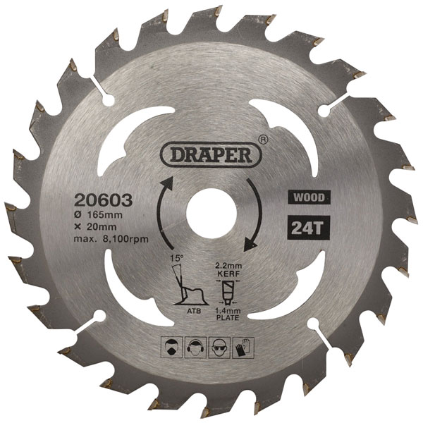 Draper 20603 TCT Circular Saw Blade for Wood, 165 x 20mm, 24T