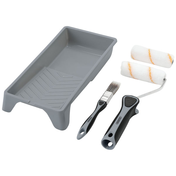 Draper 20796 Medium Pile Polyester Paint Roller & Brush Set with Soft Grip 5 Pcs