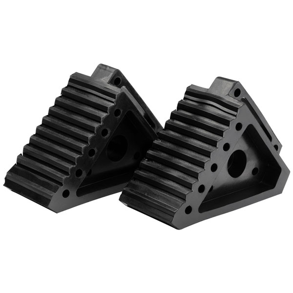 These wheel chocks are constructed from heavy-duty moulded rubber to improve traction between the tyre and surface.