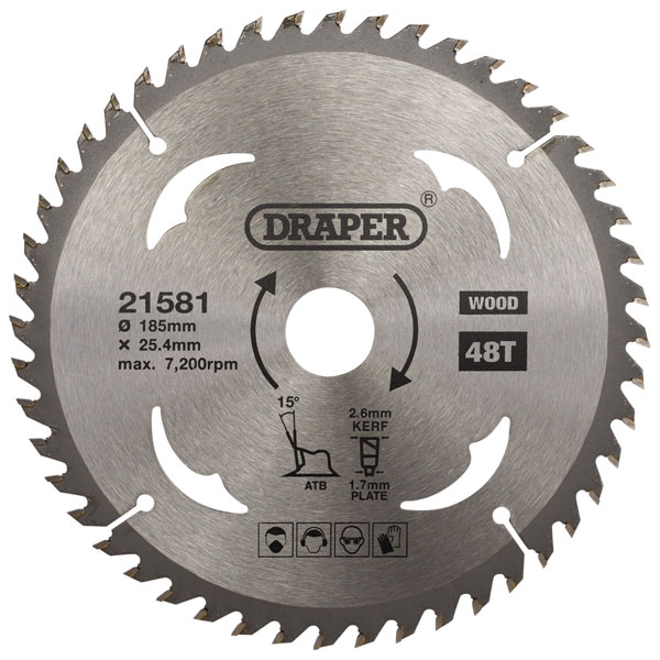 Draper 21581 TCT Circular Saw Blade for Wood, 185 x 25.4mm, 48T