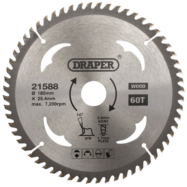 Draper 21588 TCT Circular Saw Blade for Wood, 185 x 25.4mm, 60T