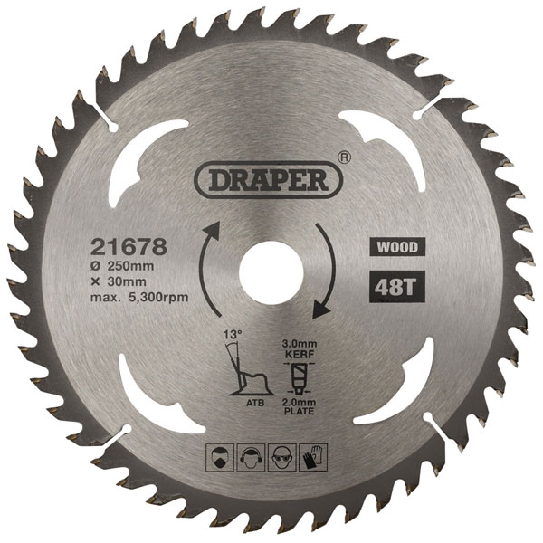 Draper 21678 TCT Circular Saw Blade for Wood, 250 x 30mm, 48T