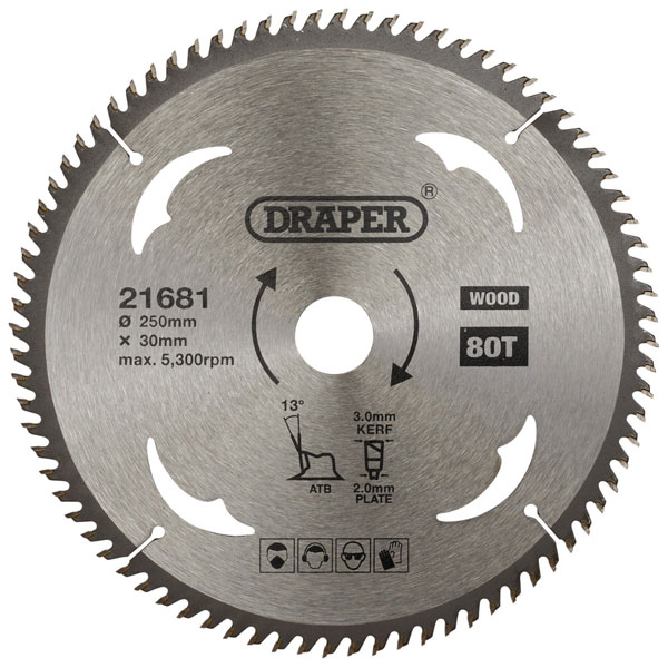Draper 21681 TCT Circular Saw Blade for Wood, 250 x 30mm, 80T