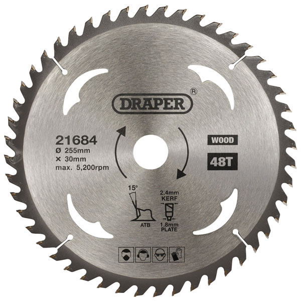 Draper 21684 TCT Circular Saw Blade for Wood, 255 x 30mm, 48T