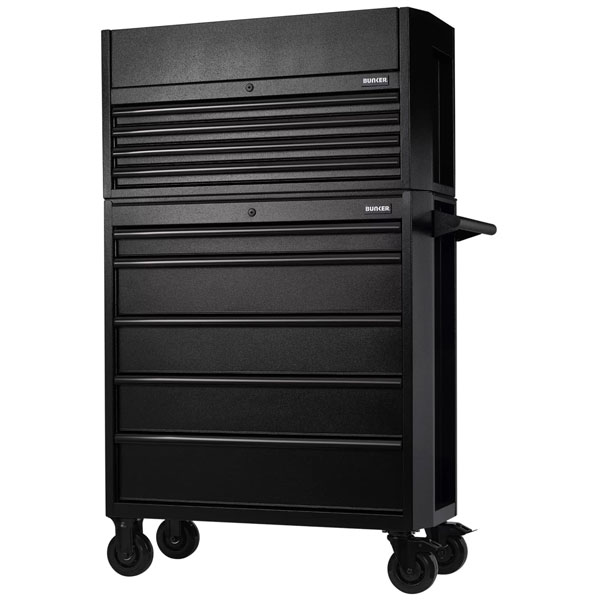 This stylishly practical 36" tool chest and roller cabinet is made of premium-quality steel, finished with a durable industrial powder coating and black anodised aluminium trim.