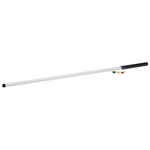Screw thread for fixing on to mops/broom handles. Supplied with four interchangeable colour coded clips - red, yellow, green and blue to aid easy identification for different janitorial jobs. Display packed.