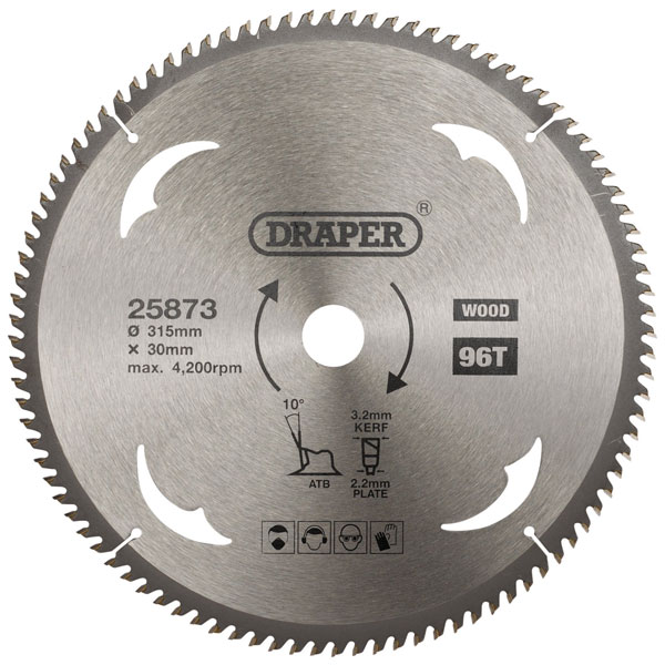 Draper 25873 TCT Circular Saw Blade for Wood, 315 x 30mm, 96T