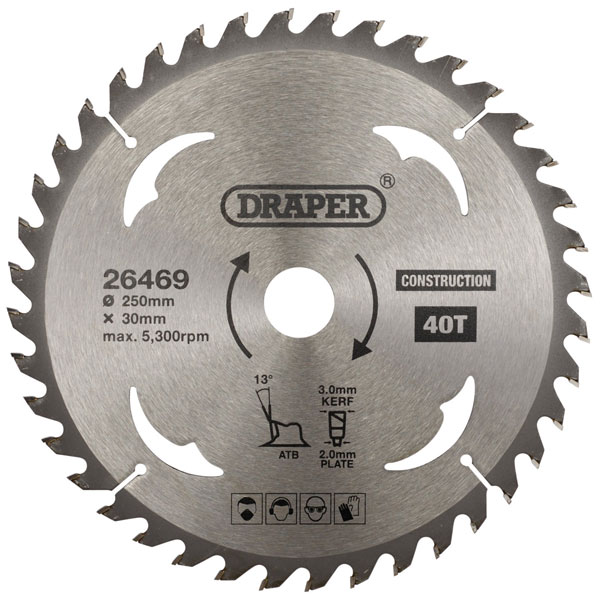 Draper 26469 TCT Construction Circular Saw Blade, 250 x 30mm, 40T