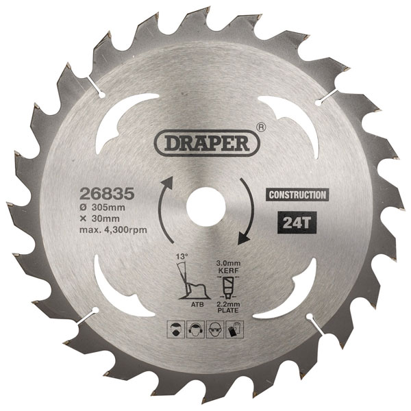 Draper 26835 TCT Construction Circular Saw Blade, 305 x 30mm, 24T