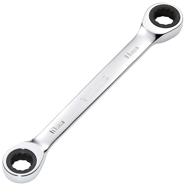 This Draper HI-TORQ® metric double ratchet ring spanner is forged from chrome vanadium steel that is hardened, tempered, fully polished and mirror chrome plated for corrosion protection.