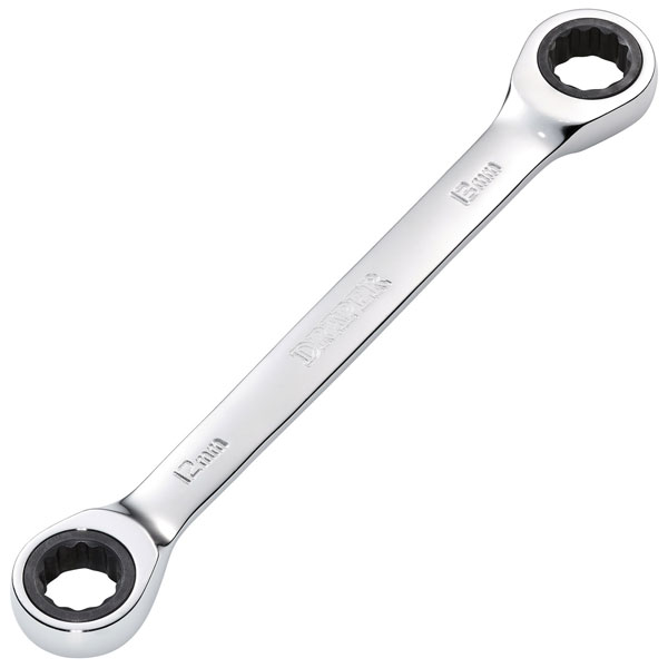 This Draper HI-TORQ® metric double ratchet ring spanner is forged from chrome vanadium steel that is hardened, tempered, fully polished and mirror chrome plated for corrosion protection.