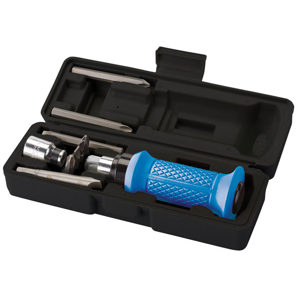 This impact screwdriver set includes an impact driver with a 1/2" Sq.