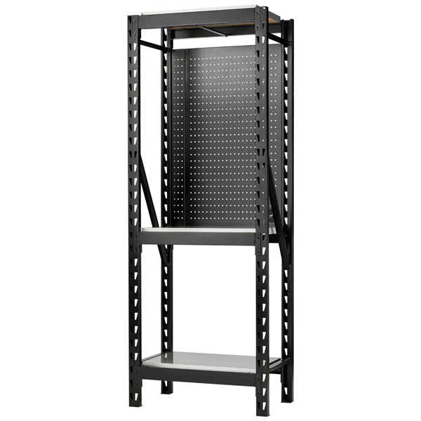 Select either hardwood or stainless steel shelving, and enjoy standard pegboard panels for hanging and proudly displaying your tools, providing even more space! Our pegboard panels feature pre-cut holes for easy power cable access, while our racking, manufactured from heavy-duty steel, ensures durability and long-lasting performance.