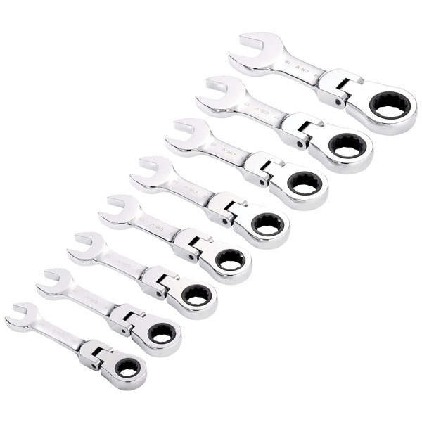 Draper 27982 HI-TORQ® Metric Stubby Flexi Head Ratchet Spanner Set 8 Pc