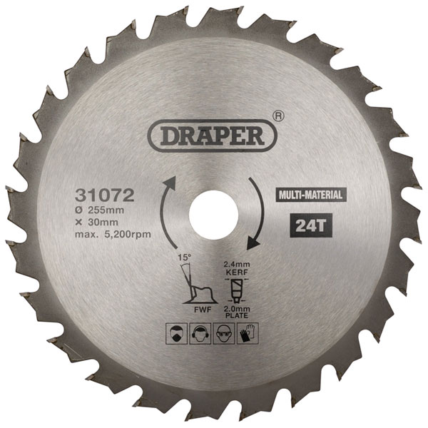 Draper 31072 TCT Multi-Purpose Circular Saw Blade, 255 x 30mm, 24T