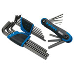 Manufactured from chrome vanadium steel that's hardened and tempered. Comprising two sets; an eight piece set in a fold - out holder with long and short arms and the other a nine piece set with straight arms in a pocket - size holder with non - slip grip. Multiples of six sets only, Supplied in countertop display.