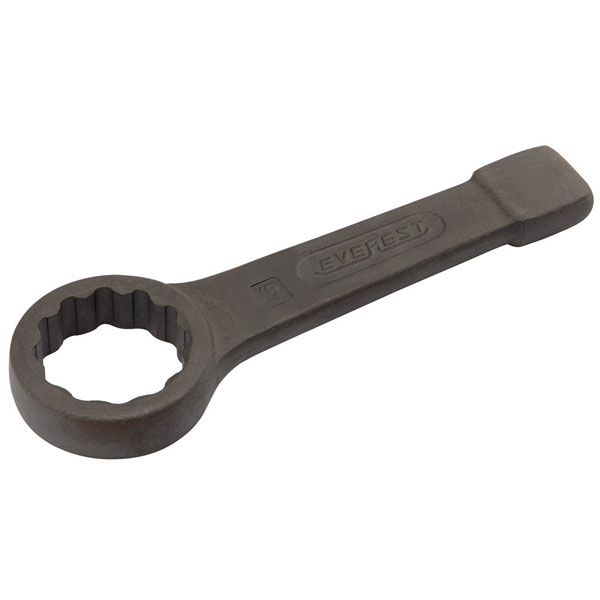 A flat pattern spanner with one end designed for striking. The spanner is forged from good quality carbon steel, hardened and tempered with a black phosphate finish.