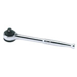 Chrome vanadium steel hardened, tempered, chrome plated and polished for corrosion protection. Fine 43 tooth ratchet, 200mm long, with forward/reverse selector. Knurled grip. Spring-loaded ball bearing for secure socket holding. Sold loose.