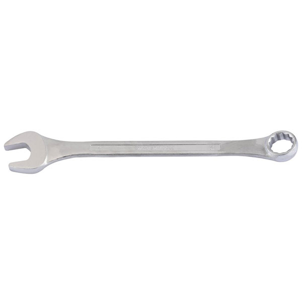 A heavy-duty long-pattern, metric combination spanner made from fully drop-forged chrome-vanadium steel that has been hardened, tempered and chrome-plated.