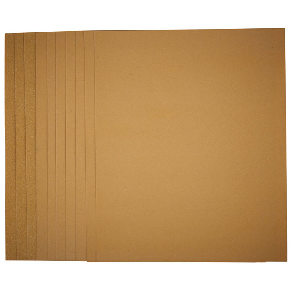 This pack of 10 general purpose sandpaper sheets (230 x 280mm) are made from aluminium oxide that is resin-bonded for durability.