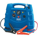 Power pack ideal for petrol vehicles up to 2000cc and diesel vehicles up to 1800cc. On/off power switch, voltmeter with battery charge, anti-surge protection and reverse polarity indicators. Heavy duty booster cables with insulated jaws. DC power socket allows the running of 12V/DC accessories to a maximum current of 15A. Integral air compressor with pressure gauge, hose and popular adaptors. Rechargeable through a 230V AC supply or a 12V vehicle cigarette lighter socket. Display carton.