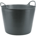 A flexible soft-sided 28 litre Black bucket with handles. For carrying water, sand, builders and garden rubbish. Ideal for use around the home and garden. Manufactured from recycled material.