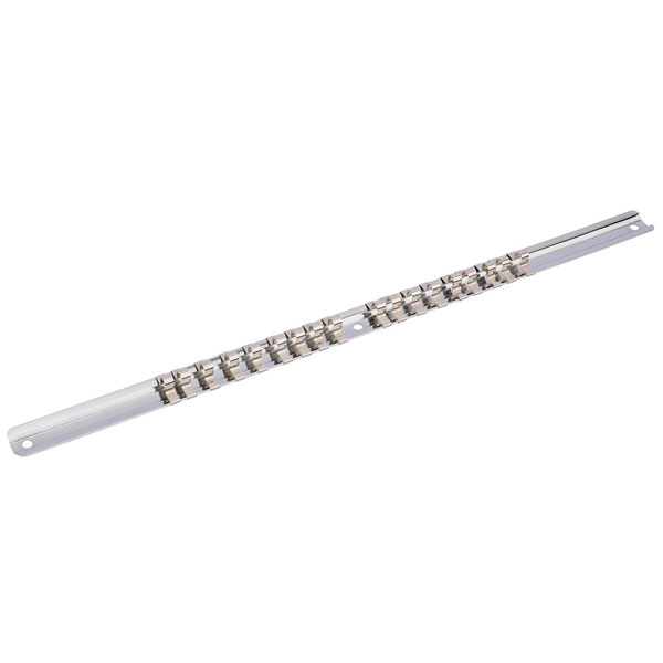 Socket retaining bars which can be wall mounted or used loose. Manufactured from carbon steel hardened and tempered with a polished finish. Clips made from nickel plated spring steel.