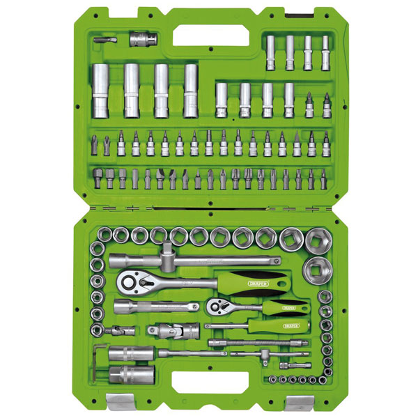 Comprehensive socket set for use around the home. Each socket is made from chrome vanadium steel, that's hardened and tempered with a matt finish. Each socket has a knurled ring for extra grip. Supplied with a 72 tooth reversible soft grip ratchet and a host of accessories. Packed in a tough plastic storage case.