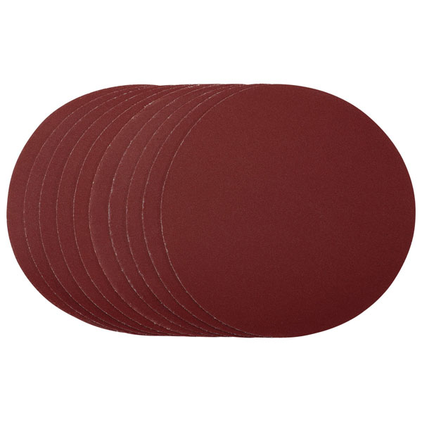 This pack of 10 premium quality aluminium oxide 180mm (240 grit) sanding discs are resin bonded to provide improved grain adhesion, anti-static qualities and long-lasting high performance.