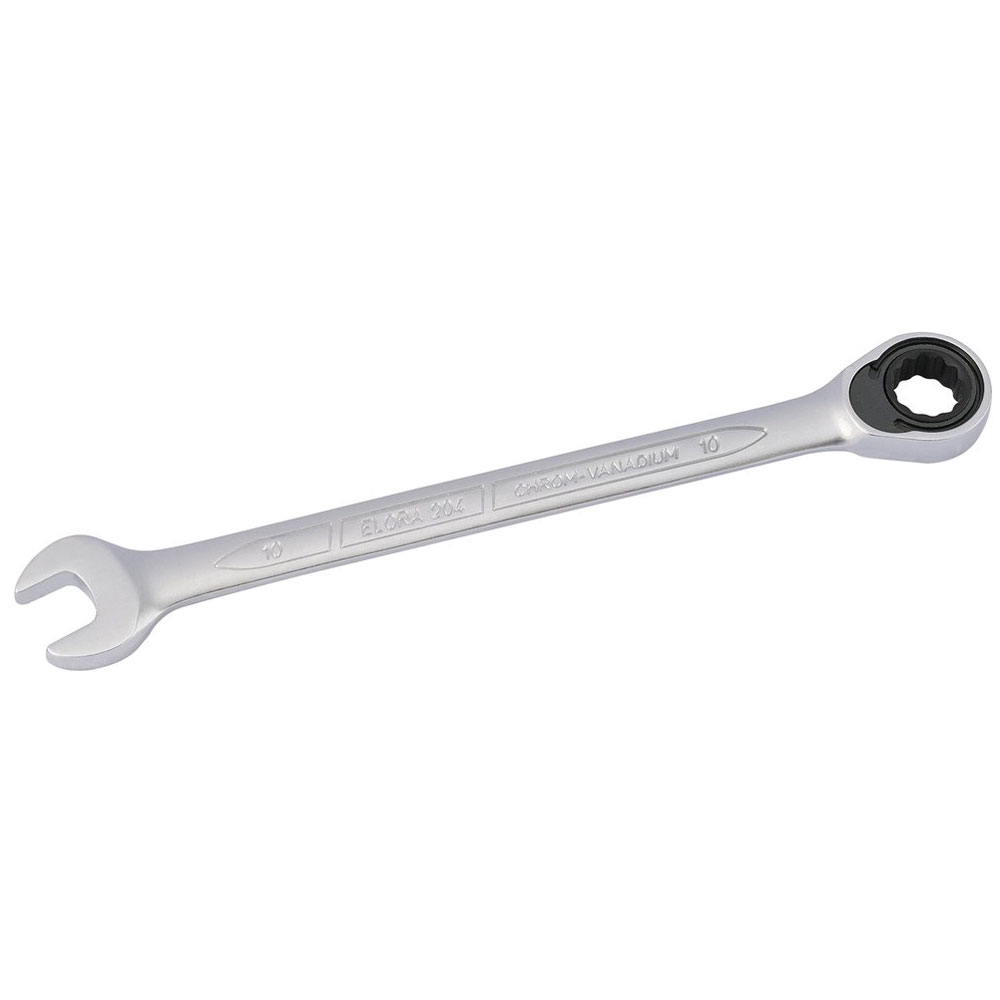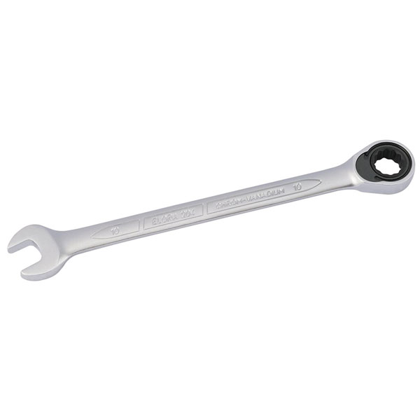 Open end set at 15�. ELO-Drive ring end manufactured with 72 teeth ratcheting mechanism - only 5� movement required to turn fastener, especially useful in confined spaces. Forged from chrome vanadium steel, hardened, tempered and matt chrome plated.
