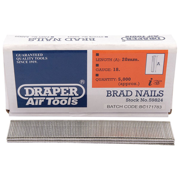 Draper 59824 Brad Nails 20mm (Pack of 5000)