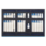 Screwdriver bits manufactured from S2 steel, which is correctly hardened and tempered with a satin chrome plated finish. Supplied complete in a two tone 1/4 drawer EVA insert tray made from closed cell foam. Suitable to be used in Draper and Draper Expert tool chests and other manufacturers similar tool chests.