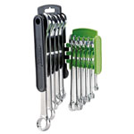 HI-TORQ° spanner set with open end set at 15°. Forged from chrome vanadium steel, hardened, tempered, chrome plated and fully polished throughout. Supplied in convenient storage rack.