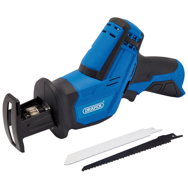 This 12V reciprocating saw has a quick release blade function and features variable speed with electronic brake, safety lock, LED worklight and battery charge indicator.