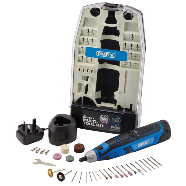 It comes with an extensive accessory kit (50-piece) organised in a plastic storage box.