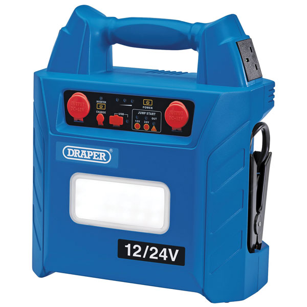 Draper 70554 12/24V Jump Starter with AC/DC Inverter 1500/3000 Peak Amps