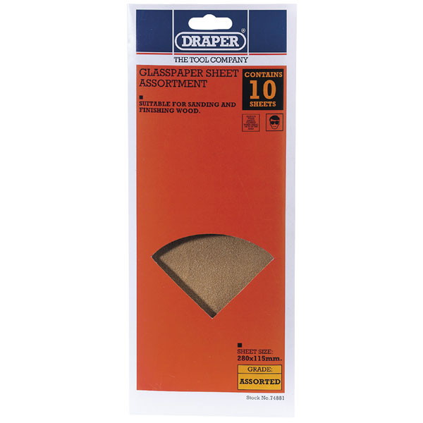 Draper 74881 10 x Glasspaper Sheet Assortment 280 x 115mm