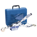 Suitable for pulling heavy objects such as cars, boats, logs, etc. Two pressed steel gears with twin locking pawls. Detachable torch incorporated into handle. Uses 2 x AAA batteries (supplied separately). Display carton.