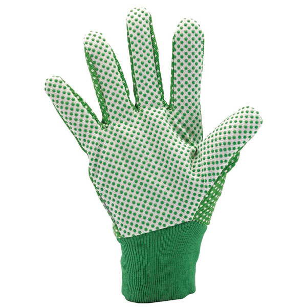 Green cotton back with polka dot pattern palm and elastic expander. Display packed.