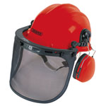 ABS durable shell, complete with face/eye visor, adjustable elasticated chin strap and noise protection ear defenders with SNR rating of 25.9dB. Display packed.