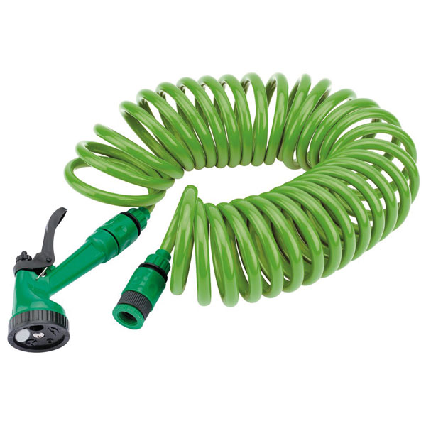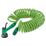 Hose kits comprising 10m or 30m (working lengths) 3/8" diameter recoil hose, 1/2" tap connector and five pattern spray gun. Display packed.
