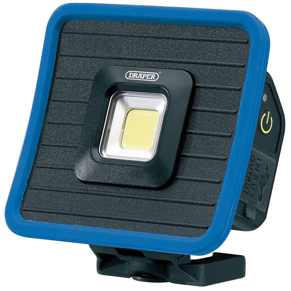 Compact and durable COB LED mini flood light and power bank for charging mobile devices.
