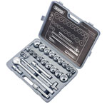 Silverdrive® socket set, manufactured largely from chrome vanadium steel hardened, tempered and chrome plated for corrosion protection. Packed in blow mould carrying case and display sleeve.