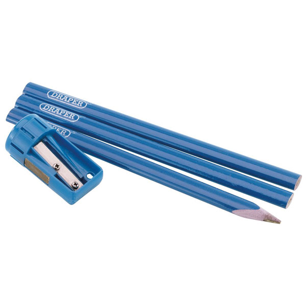 12traditional pattern broad (medium) lead pencils and sharpener that's designed for use with flat carpenter's pencils as well as conventional round profiled pencils. Supplied in a dispenser of 12.