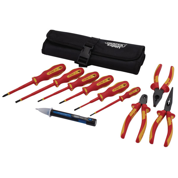 Expert quality XP1000®, selection of essential electricians' tools. Screwdrivers feature patented dual-layer insulated sheaths, which make any damage highly visible. Ergonomic soft grip bi-material handle allows free spinning in the palm of your hand to quickly tighten screws, but also allows transfer of torque when needed. Designed with flat sides to prevent them from rolling. Precision-machined tips for exact fit to prevent screw damage. The pliers are manufactured from premium steel forged in Germany. Induction-hardened jaws provide ultimate effortless clean cutting and long-term performance.