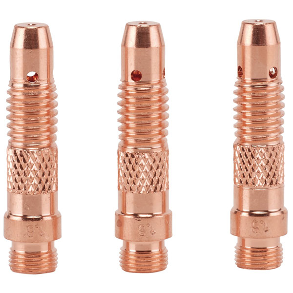 The 1.6mm collet bodies in this pack of three are for use with the Dinse Type 35––50 Air Cooled TIG Welding Torch, 4m (Stock No. 70087) and the TIG Welding Torch for All Draper Inverter/Welders (Stock No. 57096).