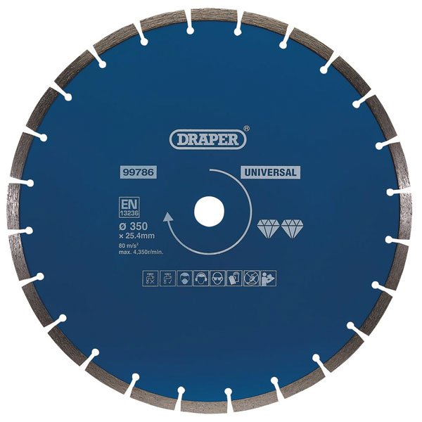 Hardened and tempered diamond blade with segmented rim for a faster cut. General purpose blade for use on concrete, bricks, stone, granite and marble. Suitable for dry and wet cutting, with optimum results when used wet. Compatible with petrol saws with a 20mm and 25.40mm bore.